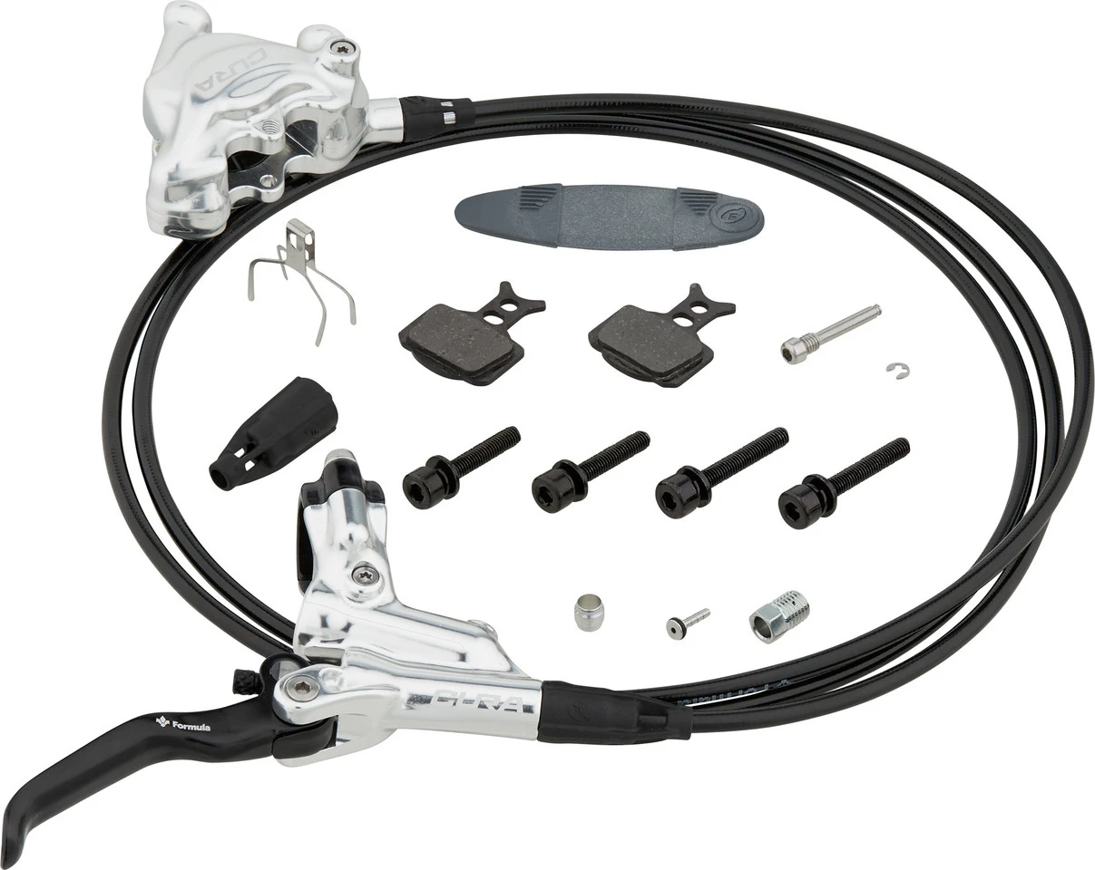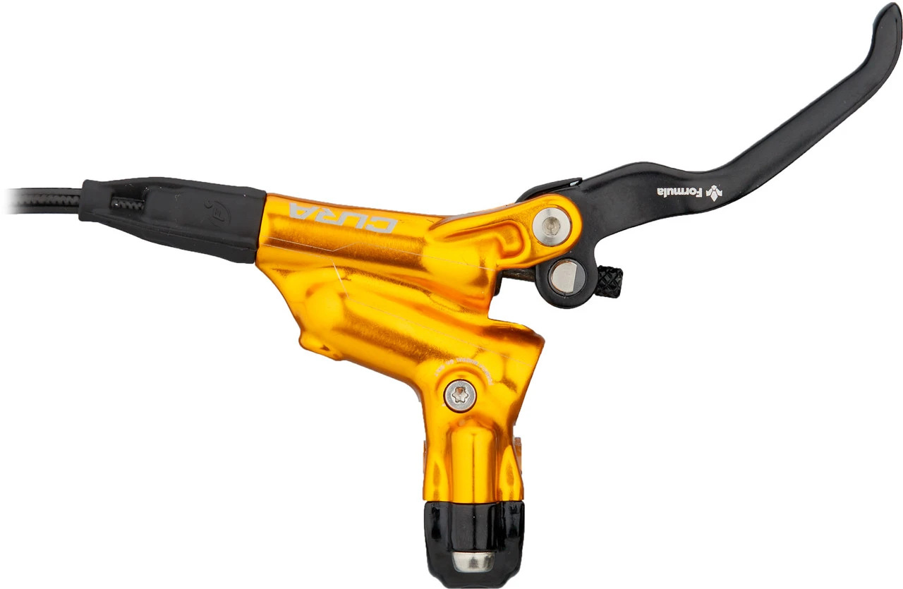 Spezifikationen:Einsatzbereich:All Mountain, Downhill, EnduroBremsentyp:hydraulisch, 2-KolbenBremsmedium:MineralölLeitung:KevlarLeitungslänge VR/HR:1750 mmTechnische Daten Bremssattel:Montage Bremssattel:Flat MountKolben:2Bremsbelag:organisch mit Trägerplatte aus AluminiumBauweise:2-teiligMaterial Bremssattel:AluminiumLeitungsanschluss:GeradeTechnische Daten Bremsgriff:Hebellänge:2-FingerEinstelloptionen:GriffweitenverstellungMontage:Klemmschelle (geteilt)Bauart:1-teiligMaterial Bremshebel:CarbonMaterial Bremsgriffgehäuse:AluminiumHerstellernummern:glossy black:FD94175-FUgold:FD94175-FPpolish:FD94175-FGLieferumfang:1 x Bremssattel Formula CURA FM1 x Bremsgriff Formula CURA FM1 x Bremsleitung Formula