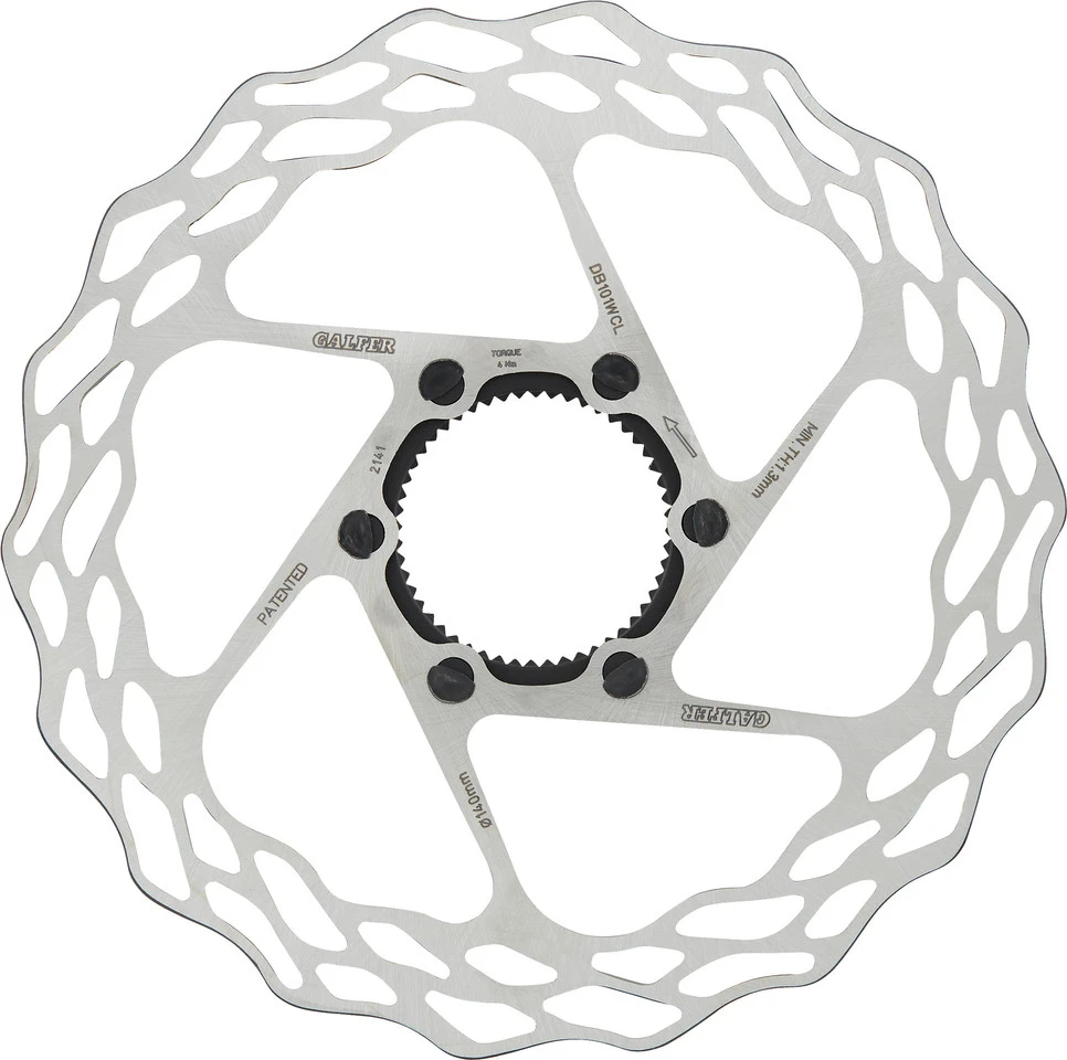 Features:1,8 mm dicklasergeschnittenstarke, dosierbare Bremskraftleicht, leise und vibrationsarmbesonders hitzeresistent durch hohen Kohlenstoffgehalt an der Bremsflächegleichbleibende Leistung bei trockenen und nassen Bedingungenmit Korrosionsschutzhergestellt in SpanienHerstellernummern:140 mm:DB101WCL160 mm:DB102WCLLieferumfang:1 x Bremsscheibe GALFER Fixed Disc Wave 1,8 mm Road Center Lock