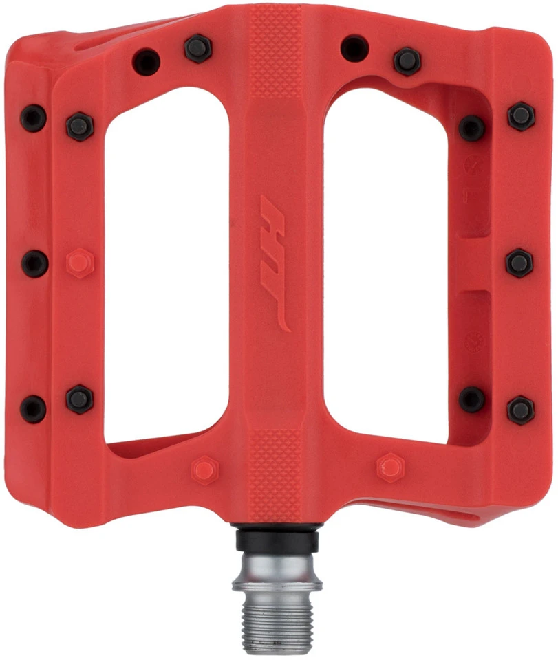 Spezifikationen:Einsatzbereich:Downhill, EnduroAusführung:PlattformpedaleTechnische Daten:Material Pedalkörper:KunststoffMaterial Achse:Stahl (CrMo)Lagerung:gedichtet, DU BuchsenBauhöhe:18 mmMaße [L x B]:100 x 95 mmAnzahl Pins pro Pedal:14 (6 molded Pins)Features:E-Bike kompatibelPedalklassiker, nahezu unzerstörbaraus Nylon-verstärktem Verbundstoff hergestellte PlattformCNC-gefertigte Stahl-AchseNANO Bearing System (2 gedichtete Lager mit DU-Buchsen)austauschbare SAP-Pins (6 pro Seite)Herstellernummern:orange:HT-PA-01A-(798)red:HT-PA-01A-(186c)black:HT-PA-01A-(001)Lieferumfang:1 Paar Plattformpedale HT NANO-P PA01A