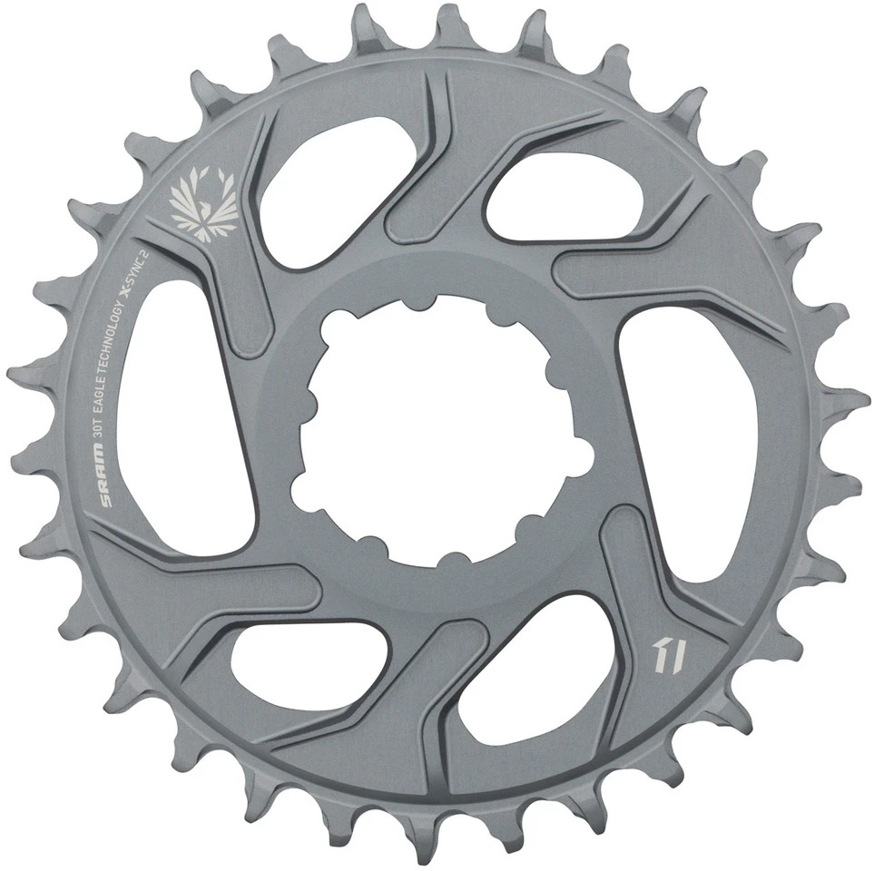 Das X-SYNC 2™ Eagle-Kettenblatt ist radikal neu. SRAMs Ingenieure haben dafür die Performance und die Abnutzung Tausender von X-SYNC™-Kettenblättern untersucht. Kettenblätter jeder Größe wurden allen nur denkbaren Belastungen ausgesetzt, im Testlabor wie im Gelände. Das Ziel war ein Kettenblatt, das die Leistungsfähigkeit der Eagle-Gruppe unter allen Einsatzbedingungen steigert. Das Ergebnis: Die Kettenblattzähne sind länger und geformt wie bei einem Sägeblatt, um perfekt in die Eagle-Kette zu greifen. Das neue Kettenblatt erhöht so die Kettenspannung und den Wirkungsgrad beim Pedalieren. Gleichzeitig werden Reibung, Kettengeräusche und Abnutzung vermindert. Zudem ist mit der Variante “ polar grey“ jetzt auch eine Kettenblattversion im neuen AXS Design erhältlich.