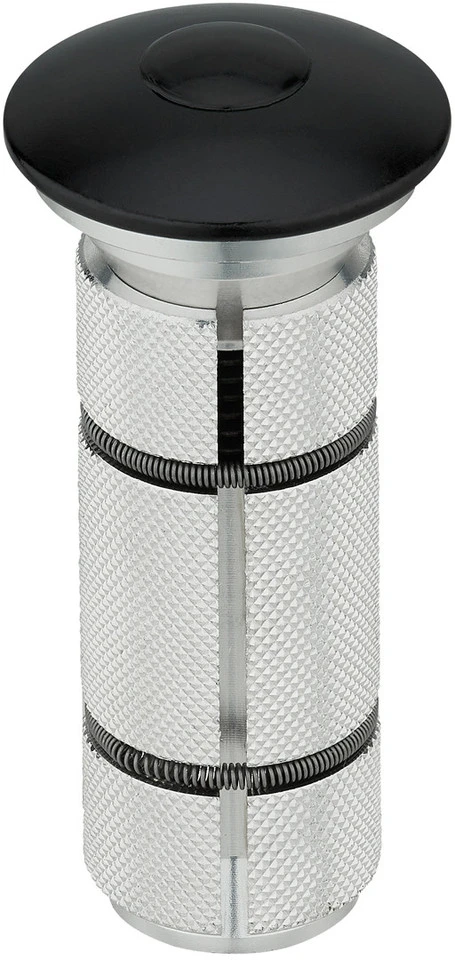 Der Steuersatzexpander von 3min19sec eignet sich sowohl für Gabelschäfte aus Carbon wie aus Aluminium, sofern deren Außendurchmesser 1 1/8″ beträgt. Er besteht aus Aluminium und ist mit 52 mm relativ lang. Das hat den Vorteil, dass ein großflächiger Gegendruck zur Vorbauklemmung aufgebaut wird und die Kräfte so gleichmäßiger verteilt werden. Du erreichst damit nicht nur eine sichere, sondern auch ein materialschonendere Einstellmöglichkeit des Steuersatzes. Der Expander wird inklusive Ahead-Kappe geliefert.