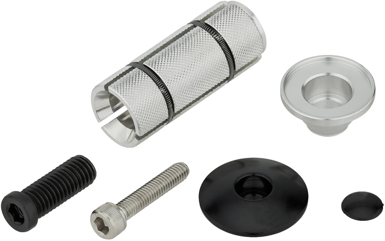 Spezifikationen:Einsatzbereich:Road, MTBGabelschaft:1 1/8″Technische Daten:Material:AluminiumDurchmesser:22 – 25,4 mmLänge:52 mmKompatibilität:Gabelschäfte aus AluminiumGabelschäfte aus CarbonFeatures:52 mm Länge für großflächigen Gegendruck zur Vorbauklemmung und gleichmäßige Kraftverteilungsichere und schonende KlemmungLieferumfang:1 x Steuersatzexpander 3min19sec für Aluminium- und Carbongabelschaft1 x Ahead-Kappe